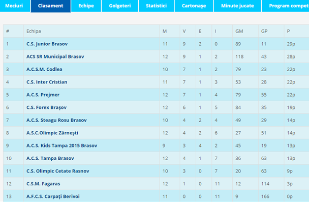 Echipele U11 ( jucatori sub 11 ani) sunt impartite astfel :